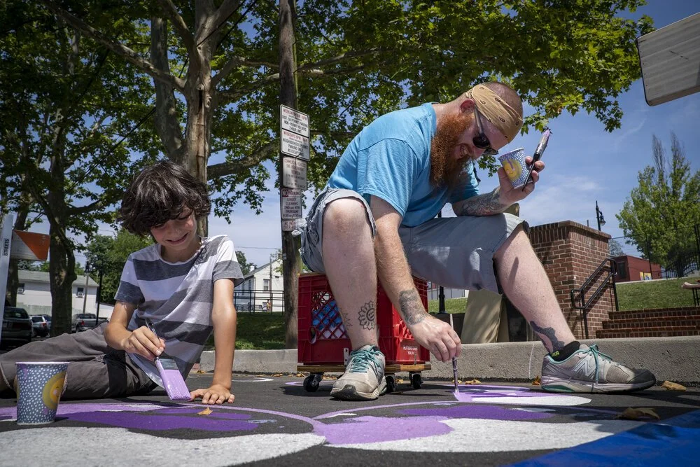Under Sophie’s art direction, Justin and artists, Adam Serrano, Hunter Bank, and Eric Regester painted the image outlines and set up a giant paint-by-numbers for neighbors to fill in at their annual block party.