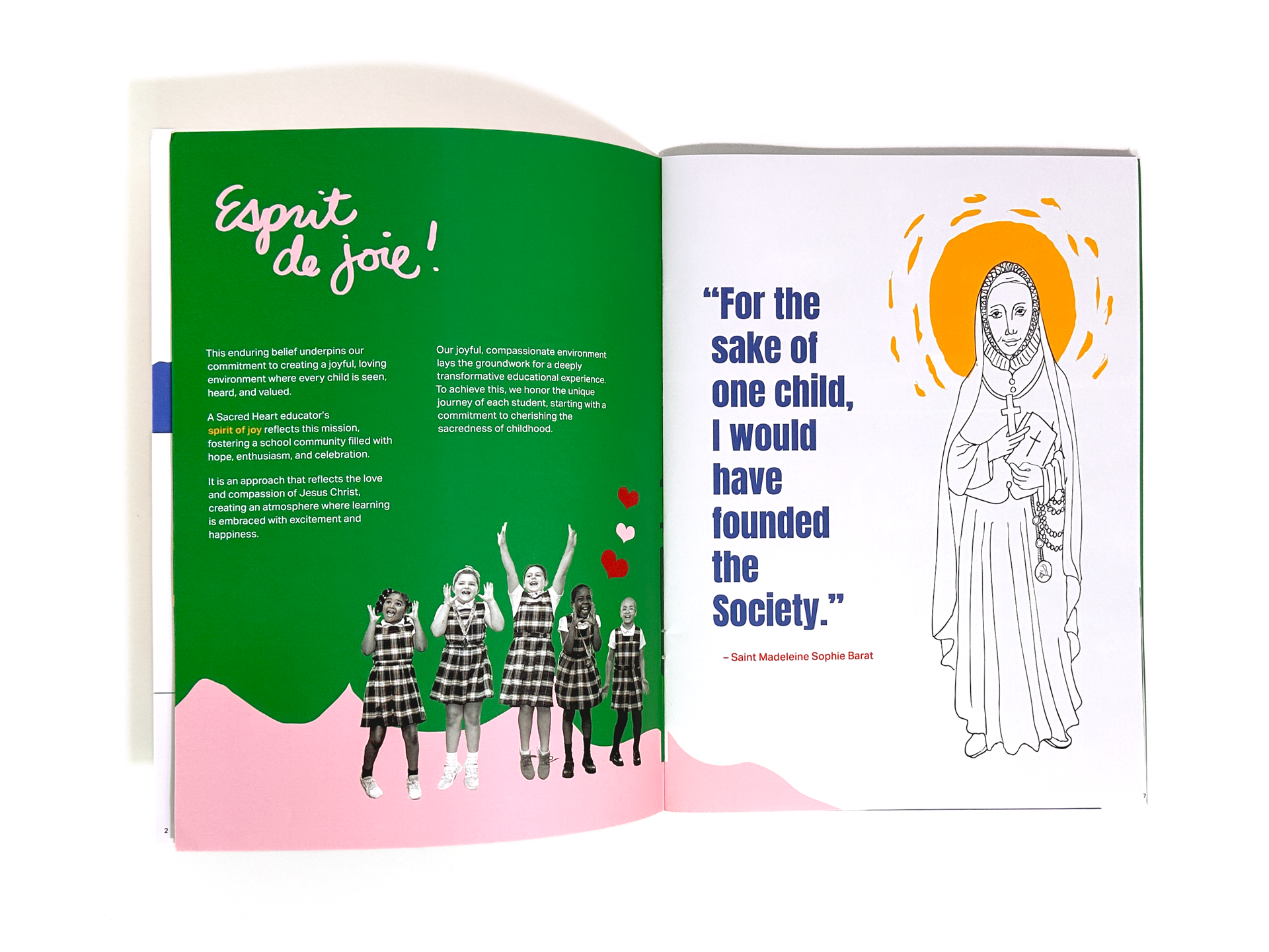 One spread in particular, featuring children at play alongside hand-drawn text and imagery, captured that balance of lightness and legacy. The piece was very well received by both Sacred Heart Academy and So Good Media, and we were invited to collaborate again shortly after.