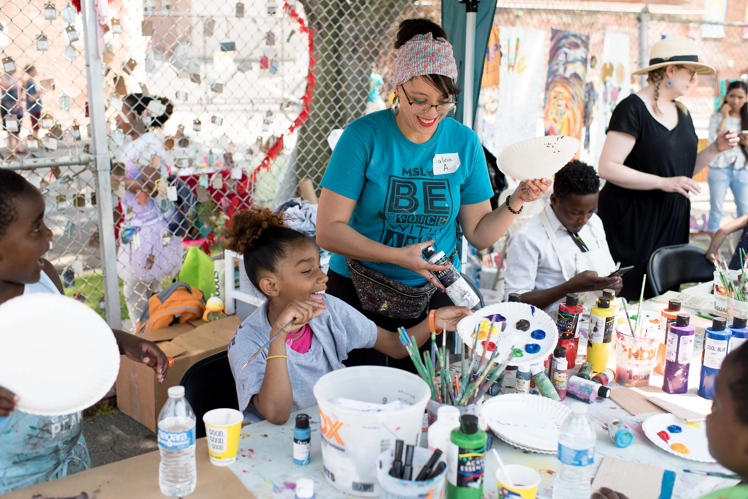 Artist Salina Almanzar works with participants at one of the 2019 "Art Pop" events. (Photo: Sara Code-Kroll)