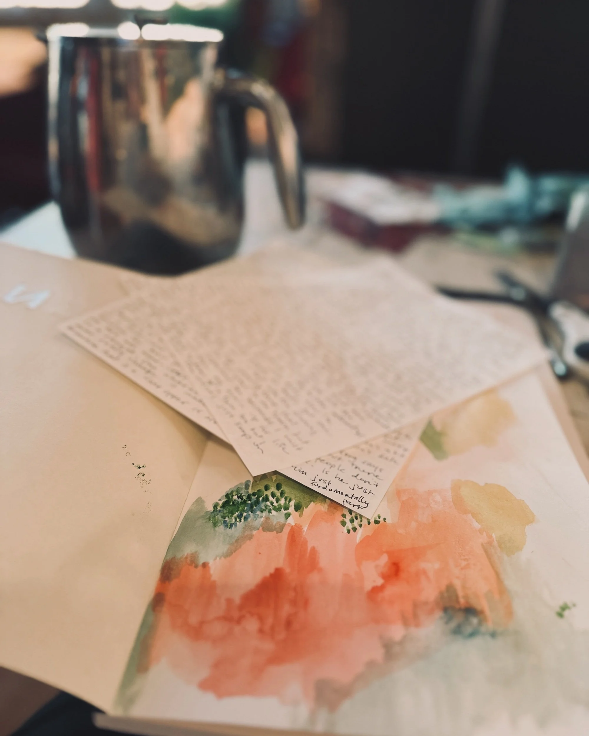 Today in my studio, the art of collage takes center stage, breathing new life into watercolor fragments. Join me as I explore the harmonious chaos of combining, painting, and attaching, unveiling pieces that whisper stories of mood and motion.